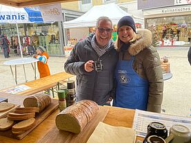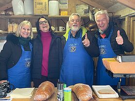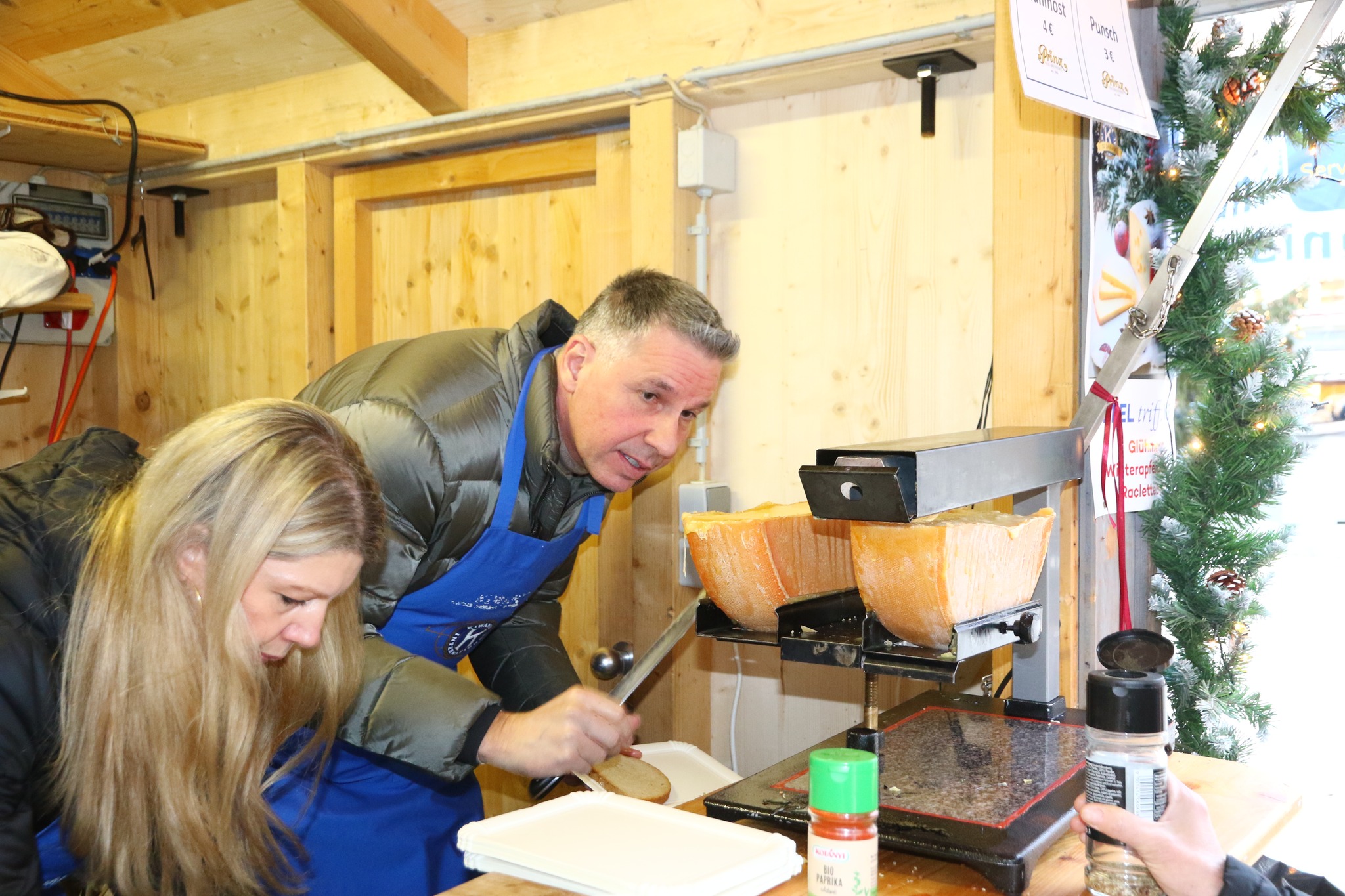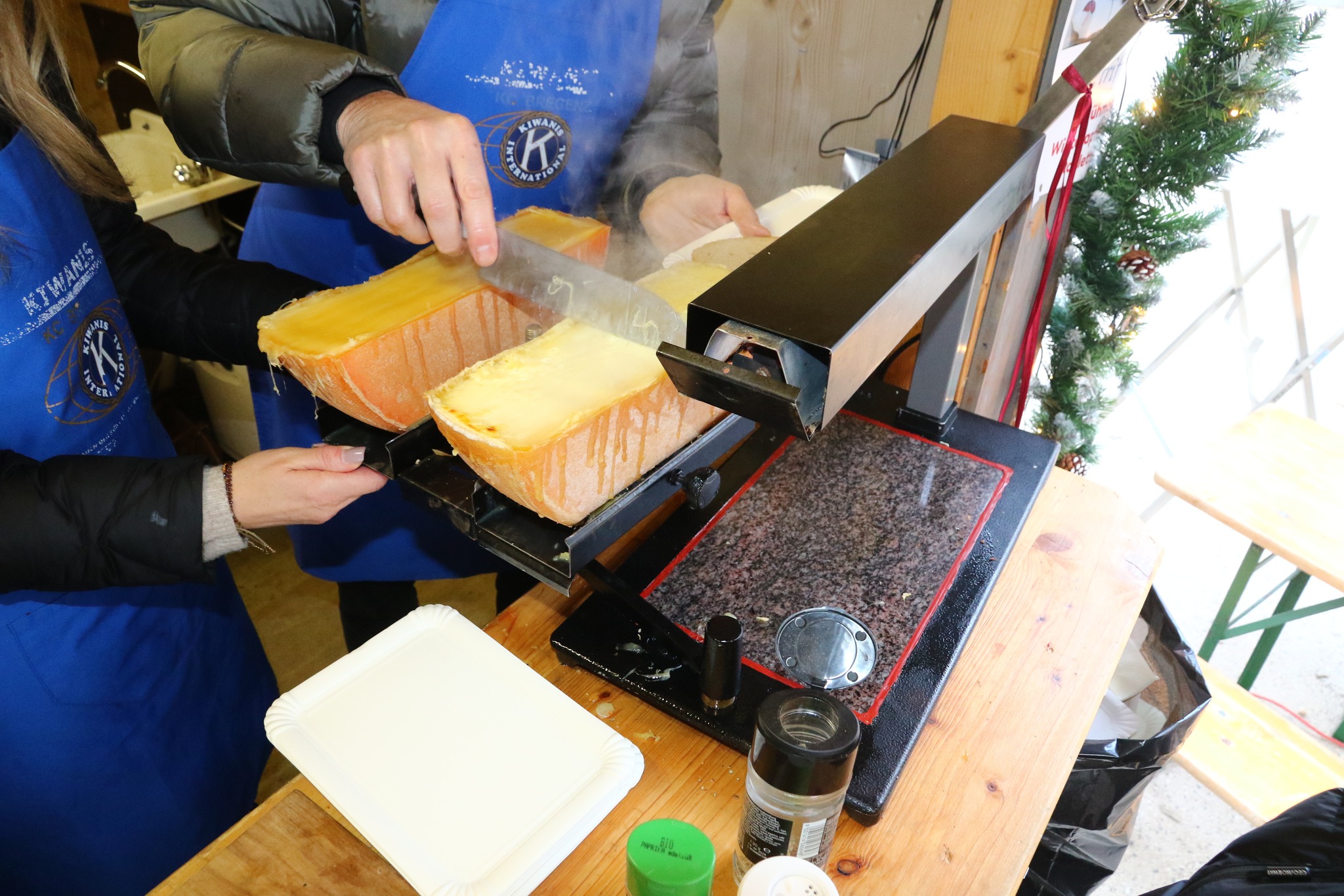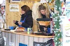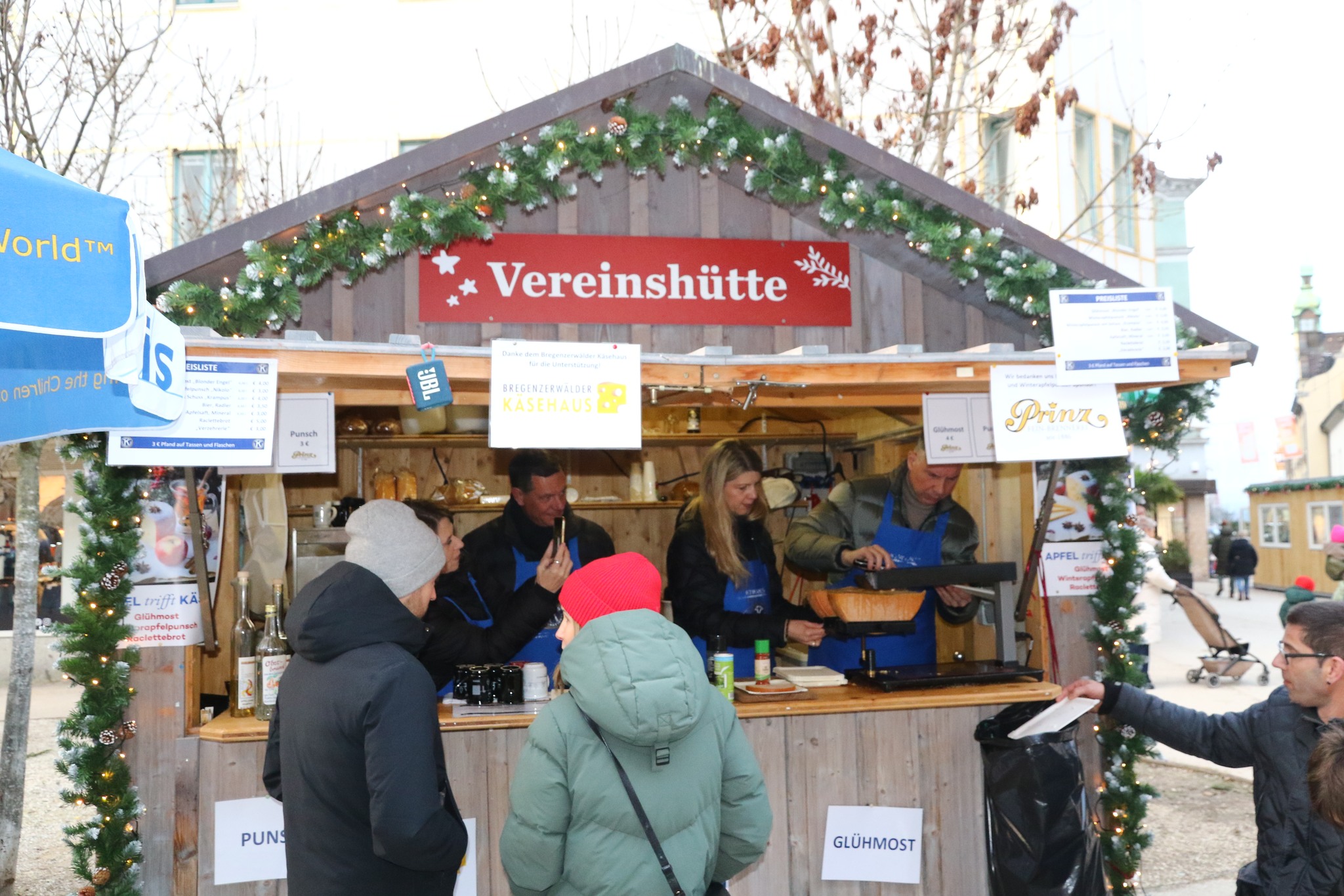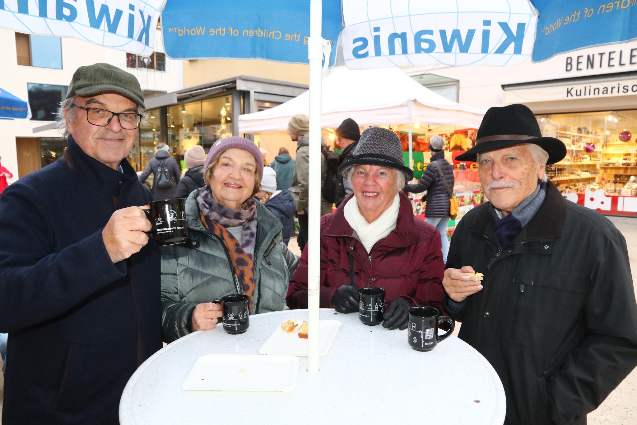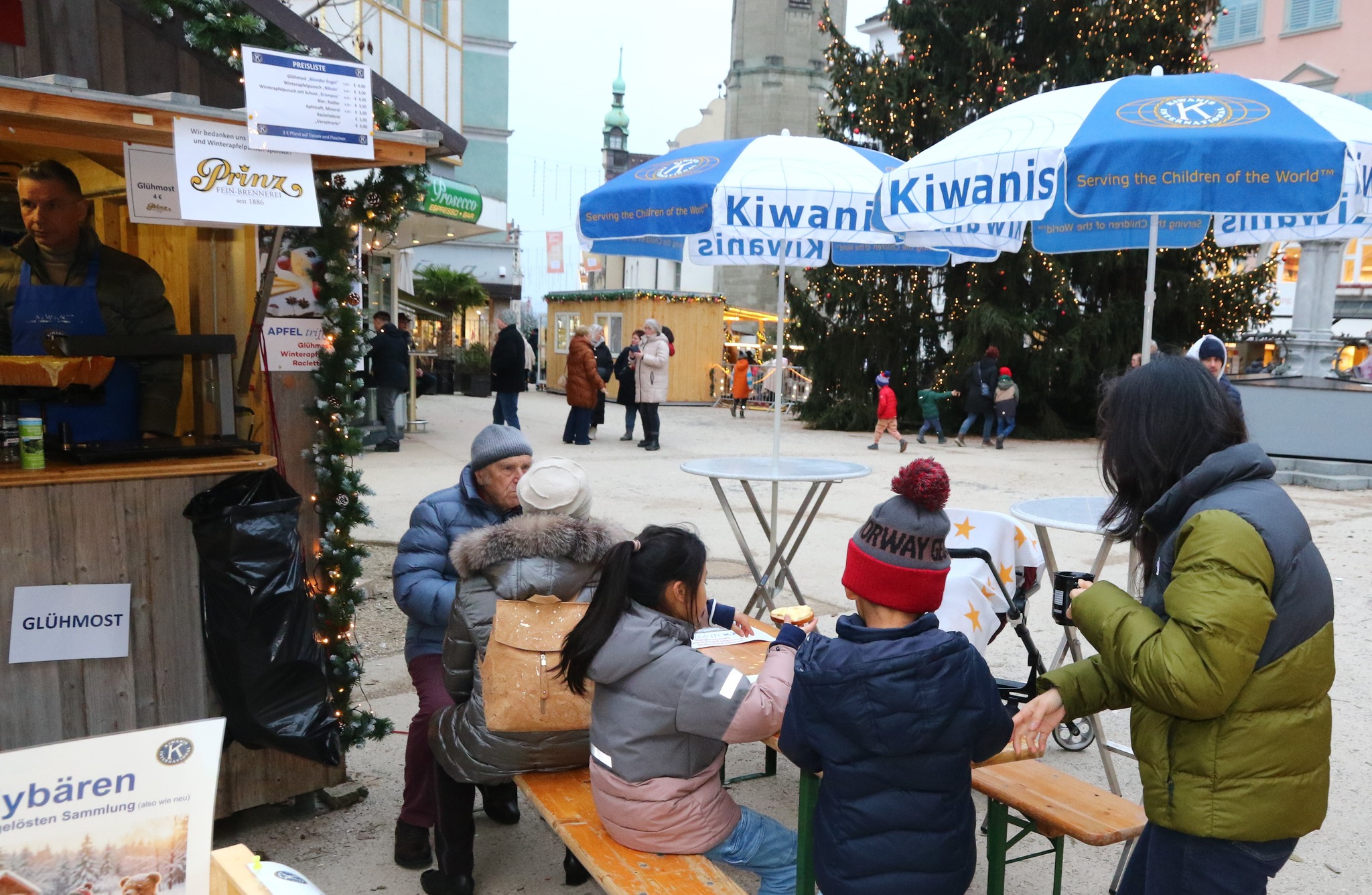 Es vermischte sich ein Duft aus Glühmost und Käse um den Kiwanisstand herum. Am SA 13.12. betrieb der Kiwanis Club Bregenz bei fast sonnigem Wetter den Vereinestand des Weihnachtsmarkts am Leutbühel. Viele Kiwanisfreunde schauten mit Partnerin oder Familie auf einen Schwatz, einen Winterapfelpunsch oder Glühmost und ein Raclettebrot vorbei. Auch sonst war der Stand recht gut besucht.